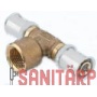 Pressfitting, aus Messing, T-Stück mit Stützkörper, O-Ringen, und jeweils 3 auf den Fittingen fixierten Edelstahl-Hülsen für die unlösbaren Verbindung ...