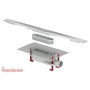 Einlaufrost Edelstahl 115x115mm, GV Prim mit Geruchsverschluss Primus flach, Kunststoffrahmen 123 x 123 mm / Edelstahlrost 115 x 115 mm, Baustützrahme ...