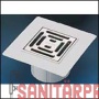 185x185mm/115x115mm Kunststoffaufsatz PP d 110 mm mit PVC-Kragen 185 x 185 mm und Einlaufrost Edelstahl 115 x 115 mm. Gesamthöhe 109 mm, Rahmenhöhe 30 ...