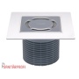 Aufsatz d 145 mm glatt mit Edelstahlrahmen (V4A) 150 x 150 mm und "Quadra"-Einlaufrost Edelstahl (V4A) 138 x 138 mm. Gesamthöhe 150 mm, Rahmenhöhe 9 m ...