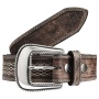 Rautenstickereien auf abgeschabtem Used Look statten den markanten Ledergürtel mit zweireihig abgesteppten Kanten von Stetson mit einem verwegenen Cha ...