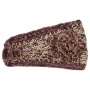Das modische Stirnband sticht mit dem schönen Pailletten-Design ins Auge und begeistert seine Trägerin. Die aufgebrachte Strickblume schimmernd dabei ...