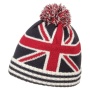 Die doppellagige Wintermütze von McBURN sticht mit der aufgestrickten britischen Nationalflagge ins Auge. Ein farblich passender Rippstrickumschlag so ...