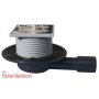 Balkon- und Terrassenablauf DN50/75 mit Dichtflansch, von waagrecht bis senkrecht stufenlos drehbarem Abgang, frost- und austrocknungssicherem Geruchssperreinsatz, ablängbarem Aufsatzrahmen 12 - 70 mm / 123 x 123 mm und Einlaufrost Edelstahl 115 x 115 mm sowie Baustützrahmen. Bauschutz im Lieferumfang enthalten.