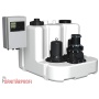 MLD.12.1.4 1x230V 1,4kW CEE Überflutbare Fäkalienhebeanlage mit einer Zulaufhöhen von 560 mm, einbaufertig mit zwei Pumpen. Sammelbehälter mit kompakter Rückschlag- klappeneinheit, Mikroprozessorsteuerung mit beleuchtetem 2,7-Zoll-LCD-Display einschl. Netzkabel und Stecker, geräuscharm und mit Freistromlaufrad. Sammelbehälter: Schlag- und bruchfest aus Polyethylen, unverrottbar, gas- und geruchsdicht. Spezieller Behälterboden mit Gefälle zur Minimierung von Restwasservolumen und Ablagerungen, Gesamtvolumen 270 ltr. Druckabgang: Flanschübergangsstück aus Composit bestehend aus Flansch 80 mit Rohrstutzen DN 100 und elastischem Verbindungsstück DN 100 sowie 2 Rohrschellen einschl. aller Schrauben und Dichtungen zur Auftriebssicherung, Anschluss von Zulaufleitung und Druckleitung in DN 100. Pumpe: Vertikal, einstufig und überflutbar, Schutzart IP68. Blockausführung mit wartungsfreiem, doppeltem Dichtungssystem und Ölsperr- kammer mit Ölbad aus physiologisch unbedenklichem Spezialöl. Rückseitig geschlitzte Motorwe