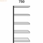 Regalfeld Stora 100 schraubloses Stecksystem aus Stahl, pulverbebeschichtet, Pfosten in silber RAL 9006 Höhe: 1900 mm Breite: 750 mm Tiefe: 600 mm ohne Rückwand 5 Fachböden mit 40 mm hohen Sicherheitskante Fachböden pulverbebeschichtet in lichtgrau RAL 7035 Böden im Raster von 59 mm höhenverstellbar Fachlast bis 100 kg Feldlast bis 600 kg Breite pro Regalwand = Nennbreite + 30 mm, zzgl. 10 mm / Feld Tiefe pro Regalwand = Nenntiefe + 40 mm