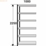 Regalfeld Stora 100 schraubloses Stecksystem aus Stahl, pulverbebeschichtet, Pfosten in silber RAL 9006 Höhe: 2250 mm Breite: 1000 mm Tiefe: 400 mm ohne Rückwand 6 Fachböden mit 40 mm hohen Sicherheitskante Fachböden pulverbebeschichtet in lichtgrau RAL 7035 Böden im Raster von 59 mm höhenverstellbar Fachlast bis 100 kg Feldlast bis 600 kg Breite pro Regalwand = Nennbreite + 30 mm, zzgl. 10 mm / Feld Tiefe pro Regalwand = Nenntiefe + 40 mm