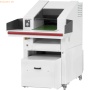 Besonderheit: äußerst leistungsstarker Förderband-Aktenvernichter mit Ballenpresse kombiniert (FA 500.3 und KP 80.1) Materialeinzug über großen Arbeitstisch und elektrisches Förderband Multifunktionales Bedien- und Anzeigenelement für Dauerbetrieb und Rücklauf sowie Auto-Reversierung bei Papierstau Integrierter, automatischer Öler für Schneidwerk Not-Aus-Leiste am Aufgabentisch für mehr Sicherheit Automatische Steuerung des Pressvorganges über Fotozelle Gleichzeitiges Vernichten während des Pressvorganges Presse mit Einfüllöffnung/Reversionsklappe zum separaten Einwurf von nicht vertraulichem Material oder Kartonagen Verpressung des Materials direkt in Auffangbeutel Made in Germany Max Ballengröße: 570 x 490 x 800 mm Presskraft: 80 kN Spannung/Frequenz: 400 V/50 Hz Motor, Leistungsaufnahme: 9200/4000 Watt Eingabebreite: 500 mm Größe (B x T x H): 1168 x 2398 x 1795 mm Gewicht: 1330 kg Farbe: lichtgrau Schnittart: Partikelschnitt Zertifikate und Zulassungen: GS-, CE-Zeichen.