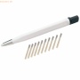 Glasfaserradierer Durchmesser 4 x 40 mm Gehäuse aus Kunststoff mit Kunststoffspitze Drehkappe mit Aufnahme für zusätzlichen Glasfaserpinsel zum Korrigieren von Tusche, Tinte und Bleistift zum Entfernen von Rost- und Oxidationsrückständen auch als Korrekturstift für Druckplatten geeignet inkl. 12 Glasfaserpinsel