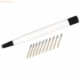 Glasradierer mit vernickelter Metallspitze zum Korrigieren von Tusche, Tinte und Bleistift, sowie zum Entfernen von Rost und Oxidationsrückständen auch als Korrekturstift für Druckplatten geeignet, sowie für die Metallreinigung zum Radieren, Polieren, Mattieren, Aufrauhen und Entgraten kann auf Wunsch mit kundeneigener Prägung versehen werden inkl. 1 Glaspinsel Durchmesser 4 x 40 mm 10 Stück im Abreißetui