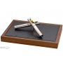 + Material: Edelstahl 18/10, matt + Schieferplatte + Rahmen aus Nussbaumholz + Höhe: 8,5 cm + Breite: 39 cm + Tiefe: 29 cm + Design: Gido Wahrmann 1 Stück Mit dem Lichtobjekt Feuerstelle, entworfen von dem Designstudenten Gido Wahrmann, interpretiert CARL MERTENS den Urtyp des Feuers völlig neu und bringt "offenes Feuer" in den Wohnbereich. Zwei übereinander liegende Edelstahlzylinder übernehmen die Funktion von brennenden Holzscheiten. Sie bilden zusammen mit der dezenten Untergrundplatte aus Schiefer ein ungewöhnliches Lichtobjekt, für das Designliebhaber Feuer und Flamme sein werden. Die Feuerstelle hat ursprünglichen Charakter. In früherer Zeit war sie lebensnotwendig, spendete Energie, Licht und Wärme und übte schon immer eine besondere Faszination auf den Menschen aus. Das neue Lichtobjekt von CARL MERTENS erinnert an den archaischen Ursprung und schafft Lagerfeueratmosphäre für moderne Nomaden. Hinter der reduzierten Optik der Feuerstelle verbirgt sich eine ausgeklügelte Technik: Die hochwertig gearbei
