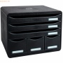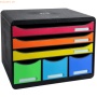 Schubladenbox Store-Box Verwendung für Papierformate: DIN A4 quer, passt in untiefe Schränke oder Büromöbel (Außentiefe 27cm) Ideal für quer Dokumente wie Tabellen griffgünstige Ausnehmung, durch die das Ablagegut ohne Öffnung der Lade entnommen werden kann federleichte Ladenführung mit einzigartigem Stopp-Mechanismus Etikettenset Montag-Sonntag im Lieferumfang Schubladen in den Farben rot, orange, lemongrün und grün, hellblau, violett
