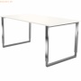 Schreibtisch mit C-Fuß-Gestell aus Edelstahl Der Bürotisch mit einer fixen Höhe aus Holz und Edelstahl ist mit einem horizontalen Kabelkanal ausgestattet und mit einer Blende zwischen den senkrechten Säulen im Tischplattenfarbton Tischplatte aus E1 Gütespan, melaminharzbeschichtet, mit ABS Kante 2 mm stark Tischplattenstärke 25 mm stabiles C-FUß-Gestell aus Edelstahl mit Seitenblende mit horizontalem Kabelkanal Fußausleger und senkrechte Rohrführung Fußausleger auf Stellfüßen optional mit Anbautisch in gleicher Bauart optional auszurüsten mit einer Knieraumblende 1550 mm breit und 300 mm hoch