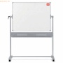 Nobo Dreh-Weißwandtafel Classic, magnetisch Doppelseitig, mit horizontaler Drehfunktion Stufenlose Schrägstellung und sichere Arretierung durch Schraubkopf Fahrgestell mit 4 leichtgängigen Rollen, davon 2 feststellbar Gute Löscheigenschaften Mittlerer Widerstandsfähigkeit gegen Farbflecken, Stifteflecken, Kratzer und Dellen Mit großer Stifteablage über die gesamte Länge Lieferung inklusive Montageset und Marker Reinigung: trocken/feucht Oberfläche/Material: lackierter Stahl Rahmen: Aluminium Format: 1200 x 900 mm Farbe: weiß