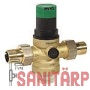 m Einstellanz ms Schrägsitz A 1/2" Gehäuse aus entzinkungsbeständigem Messing, Verschraubungen und Federhaube aus Messing, mit entlastentem Einsitzventil, Federhaube und Verstellgriff aus hochwertigem Kunststoff, Ventileinsatz aus korrosionsfestem Kunststoff auswechselbar, serienmäßig mit Sieb aus nichtrostendem Stahl. Gehäuse mit Manometeranschluss G 1/4". Vordruck max. 16 bar, Hinterdruck 1,5 - 6 bar. Voreingestellt auf 3 bar. A = mit Gewindetülle E = ohne Anschlussverschraubungen