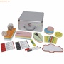 Moderatorenkoffer, Aluminium 2362 Teile Ausführung des Inhalts des Sets: 16 Marker XL u 2 XXL; 1 Schere, 400 Signal-Nadeln, 1 Klebefilm-Abroller, 1 Klebestift, 500 Karten 20,5x9,5 cm; je 120 Karten Durchmesser 9,5/13,5 cm, 11x19 cm; 20 Wolken; 960 Klebepunkte, 1 Teleskop-Zeigestab mit Kugelschreiber Tiefgezogenes Innenteil als Ordnungssystem Stabiles Schloss mit 2 Schlüsseln Karten, 150 g/m², in 6 Farben sortiert Koffer in silberner Rillenoptik Schaumstoff-Noppenpolster im Deckel Material des Behälters: Aluminium Größe (B x H x T): 35 x 17 x 36 cm Masse (Gewicht): 5,006 kg Farbe: sonstige
