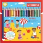 Dreikant-Buntstift STABILO Trio dick Etui Ausführung der Schaftform: Dreikant-Form Farbe des Schaftes: in Malfarbe mit weißen Streifen Material des Schaftes: Weymouths-Kiefer Schaft lackiert Größe (Durchmesser x L): 7 x 175 mm holzgefasst. In ergonomischer, kidgerechter Dreiecksform. Intensive Farbabgabe Stärke der Mine: 4,2 mm Schreibfarbe der Mine: sortiert Packungs-Inhalt: Kartonetui mit 24 Stiften