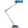 Tischleuchte Energiesparleuchte mit Schraubsockel E27, 230 Volt, 20 Watt Beleuchtungsstärke: ca. 1250 lx im Abstand von 45 cm Höhe: max. 90 cm Leuchtenkopf: 21 cm Formschöne Leuchte mit ansprechender Farbgebung Mit Doppelgelenkarm: 2 x 45 cm Leuchtenarm und Reflektor sind flexibel in alle Richtungen verstellbar Zertifikate und Zulassung: CE Zeichen, GS-Zeichen Farbe: silber/blau